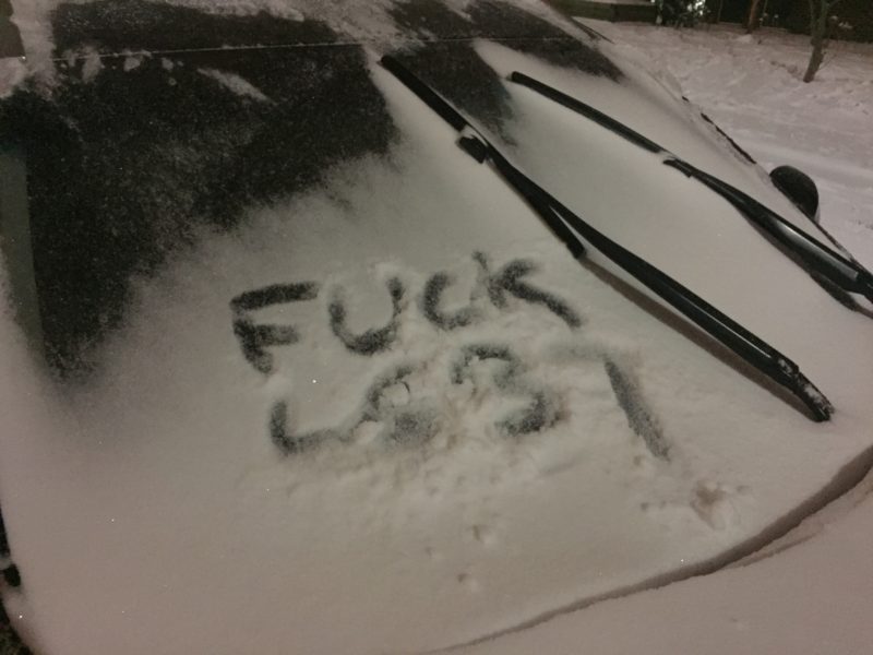 They started to sing a silly song, and they became very rowdy. I came upstairs as I became concerned as to what was happening. In the meantime as I ascended the stairs, they asked Frank, “What do you think of the LGBT Community”, Frank asked them, “What do you mean?” and they said, “Never mind!” then ran away and wrote the following on our vehicle: