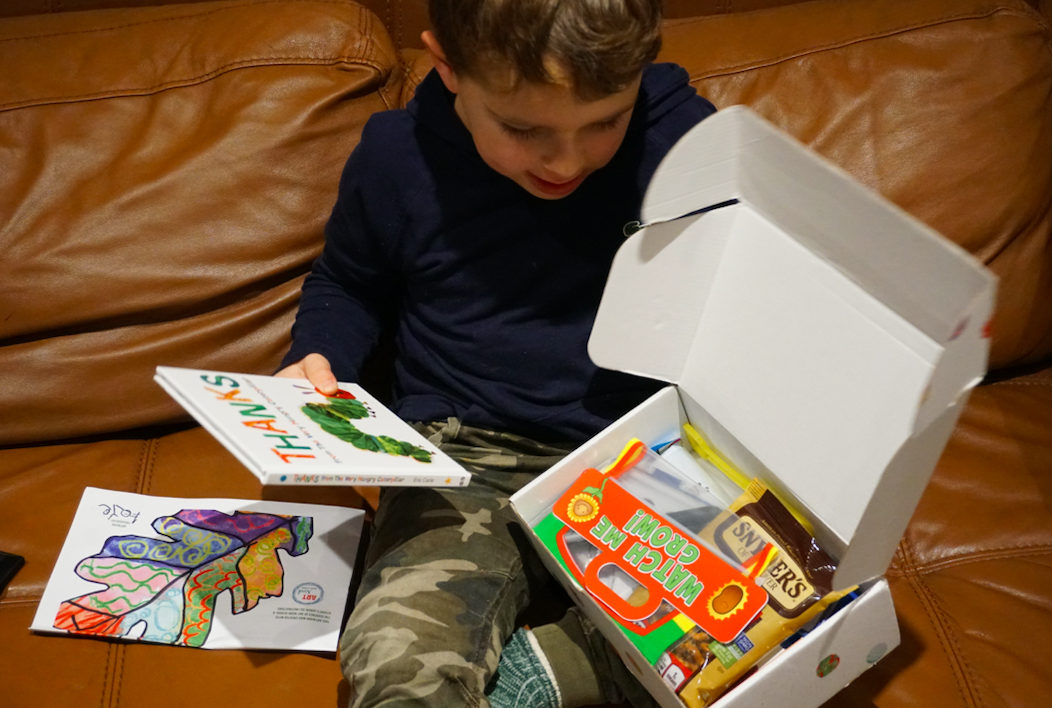 We received the “Give Thanks” Kids Night In Box and Milo couldn’t wait to open it! This month’s focus is about being thankful and being grateful for people who are in your life.