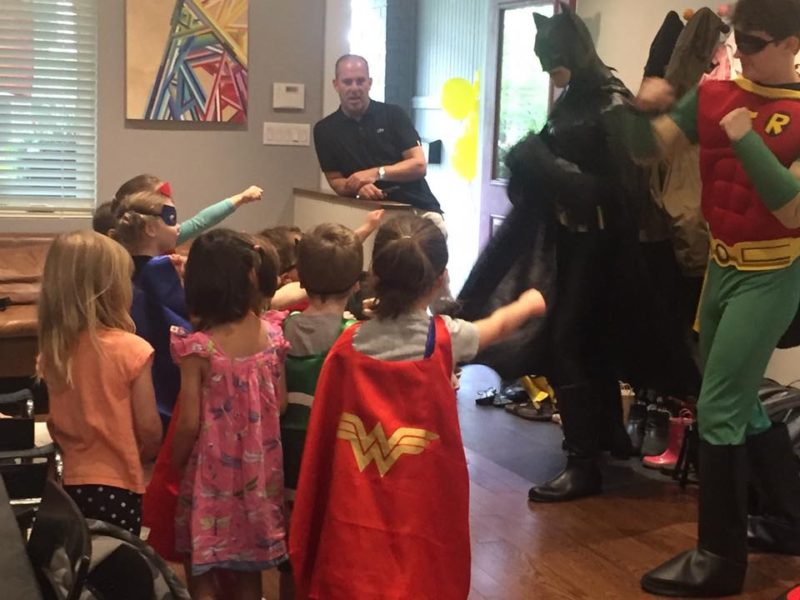 Milo’s 4th Birthday party with his girlfirends and Batman and Robin