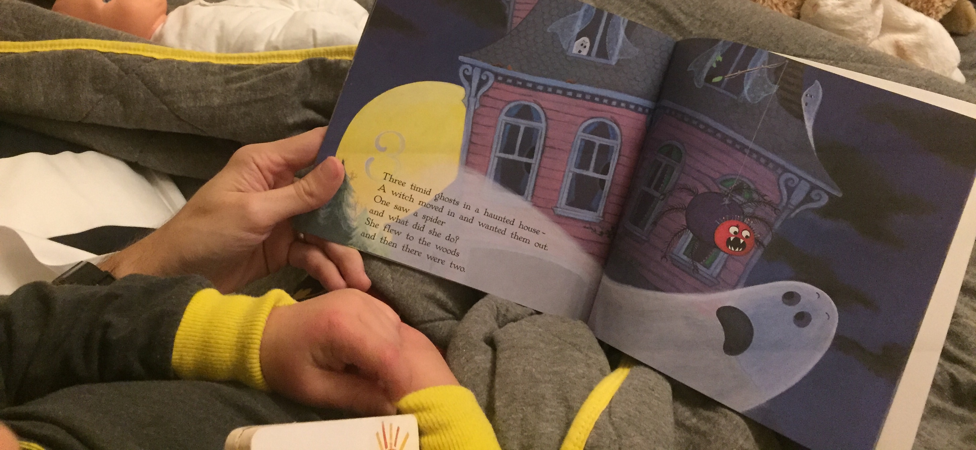 This month’s book to read is called “Ten Timid Ghosts” written by Jennifer O’Connell. Milo really looks forward to each month’s books and he said, “We have this book at school!” He was so excited to read it to me for bedtime!!