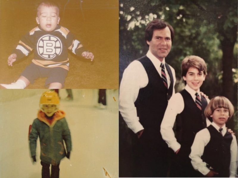 Clockwise from top left: Baby Frankie, Frankie with his dad and younger brother, and Frankie skating